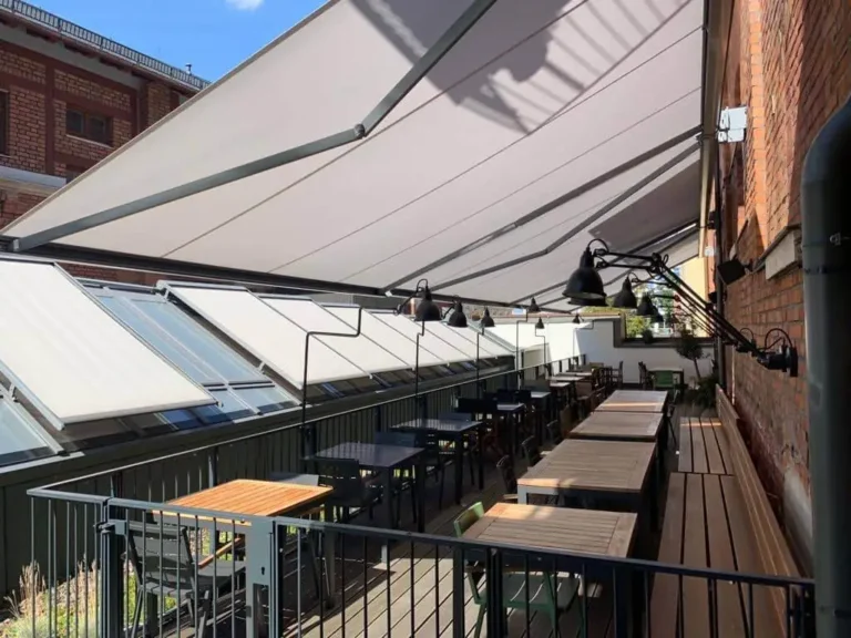Unsere Pergola-Modelle bieten seitliche Führungsschienen für maximale Stabilität, modernes Design und eine Fertigung nach Maß. Sie sind auch für Gastronomie- und Gewerbeflächen hervorragend geeignet.
